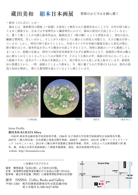 ![]() 翡翠葛 (軸装) 日本画 絹本 翡翠葛の掛け軸仕立てができあがりました。 最近は、絵の具をかなり薄塗りにしているので、 表装まで終えて、初めてその作品の本当の色調がわかる、 といった感じ。 特に掛け軸の場合は、軸に仕立ててしまうと、 もうその先、加筆することは ほとんど不可能です。 薄塗りは絹本の醍醐味ではありますが、 もう少し制作しやすいように、 先が見通しやすいように、技法を考えなくてはいけないなぁ・・ ![]() ![]() ![]() |
