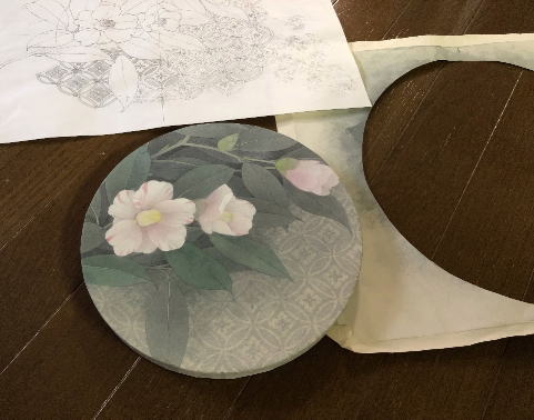 印を押す場所を、平筆などで軽く水を引き、湿らせておきます。