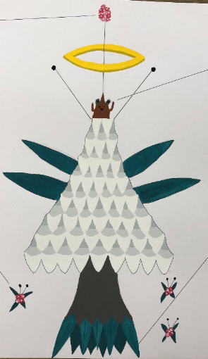 一見、天使の輪と羽根を持つクリスマスツリーのような、